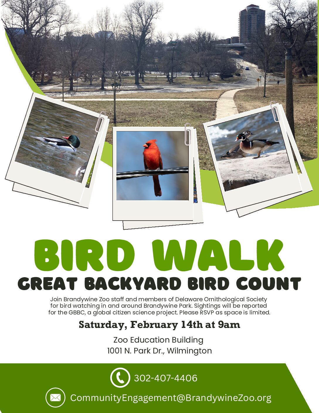 Join Brandywine Zoo staff and members of Delaware Ornithological Society for bird watching in and around Brandywine Park. Sightings will be reported for the GBBC, a global citizen science project. […]
